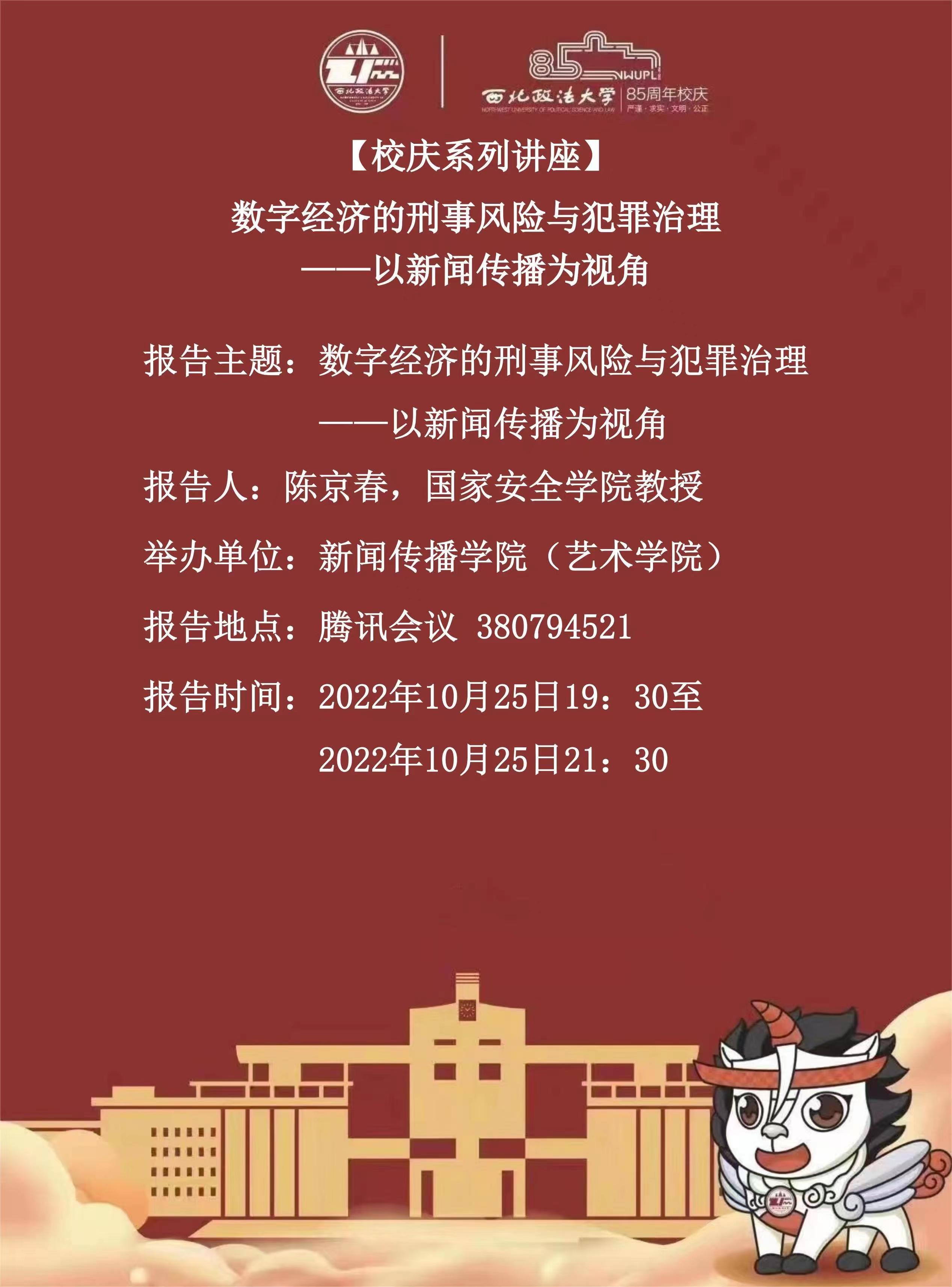 【校庆系列讲座】数字经济的刑事风险与犯罪治理--以新闻传播为视角