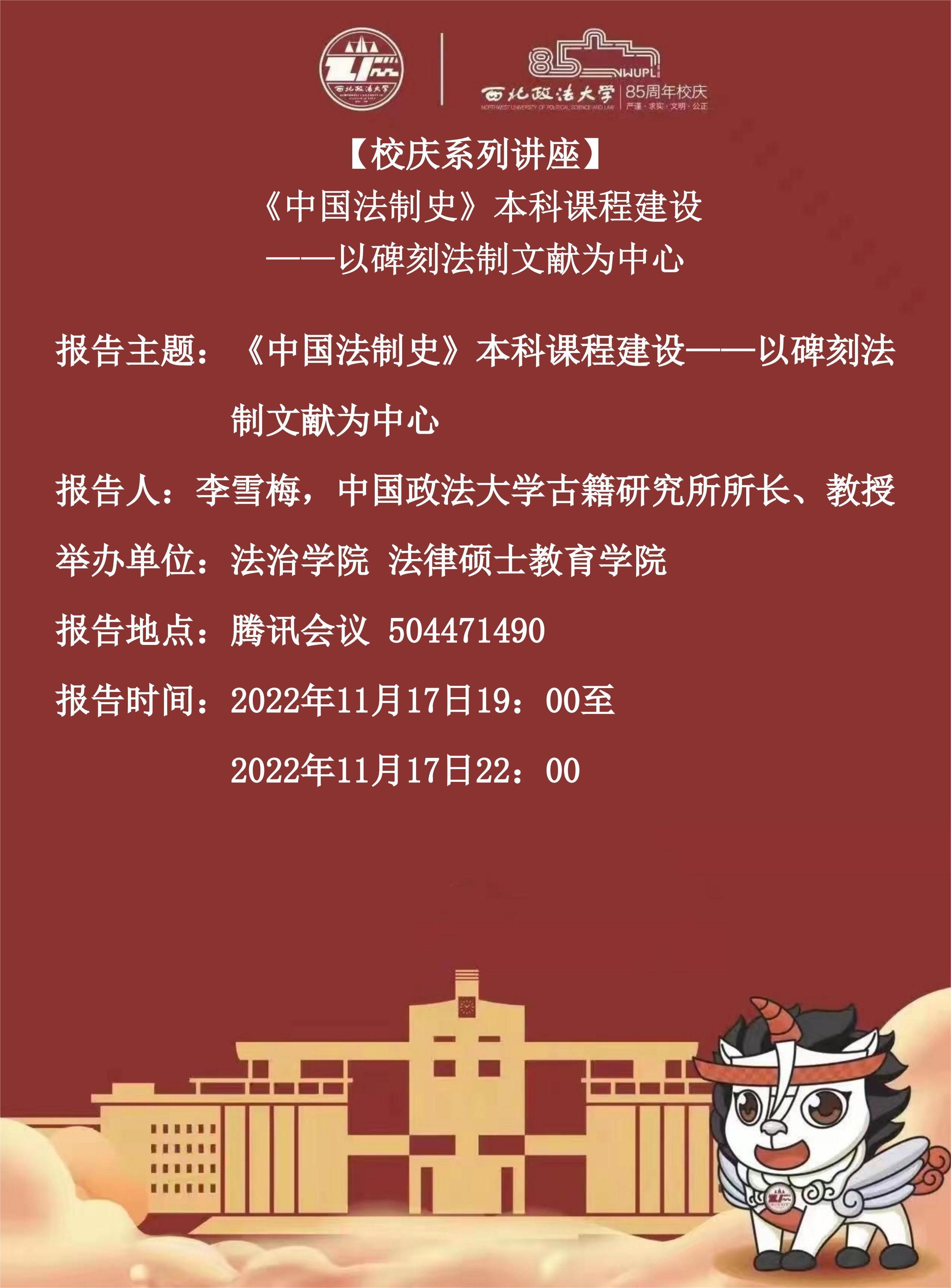 【校庆系列讲座】《中国法制史》本科课程建设——以碑刻法制文献为中心