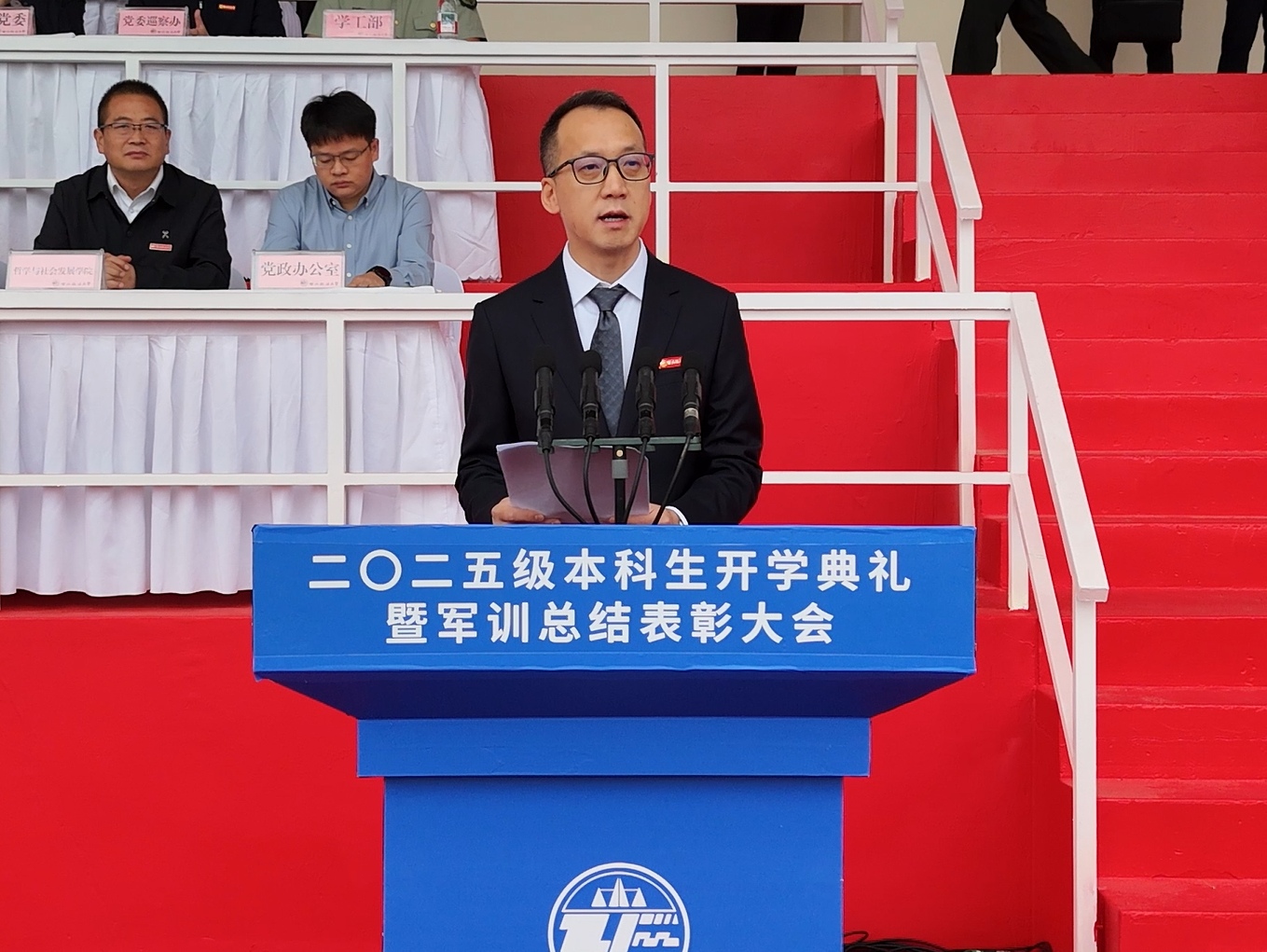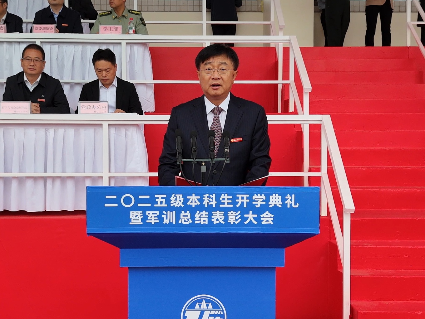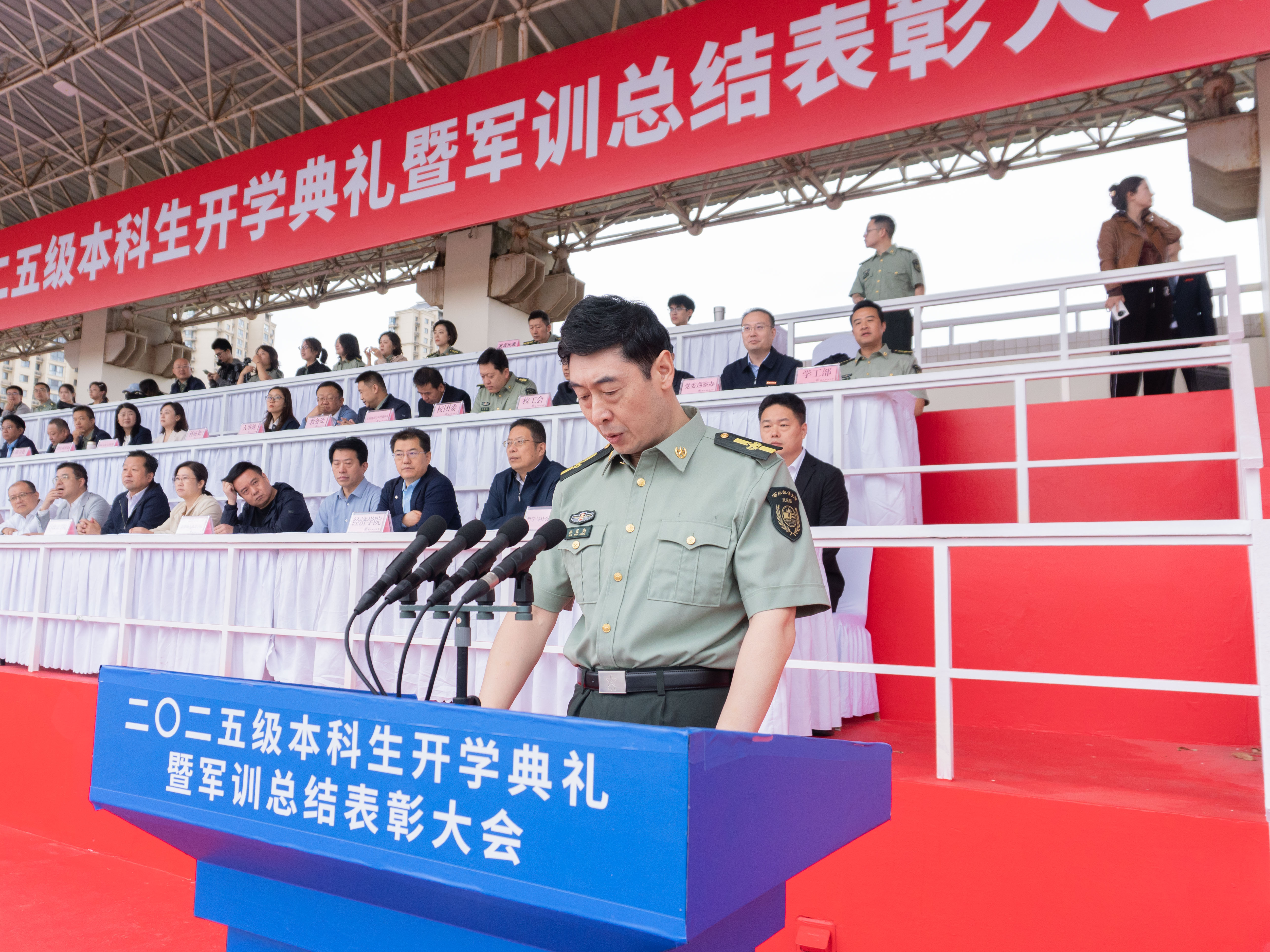 各学院党委书记、院长,各职能部门负责人,全体承训教官及2025级本科生参加大会。