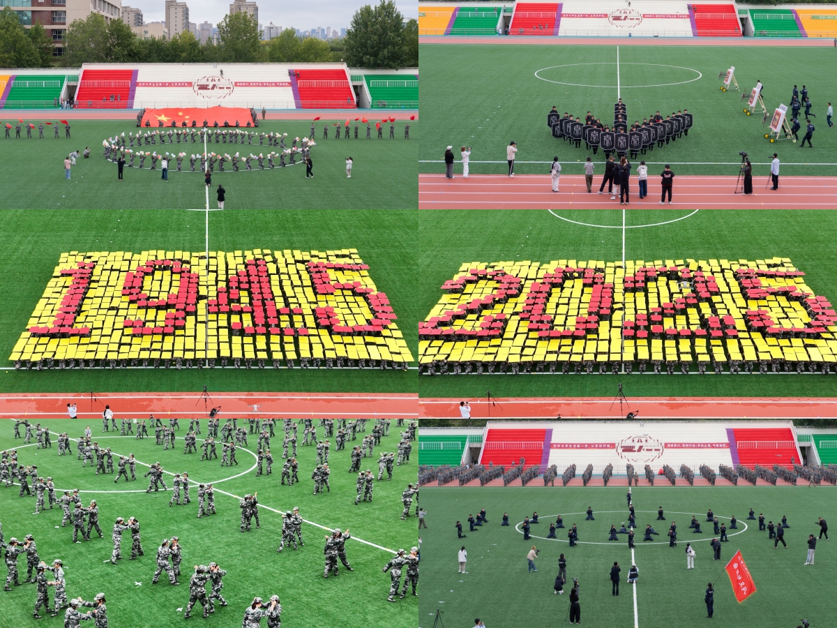 飒爽英姿、气势如虹。在军训旅参谋部副参谋长李昕的现场指挥下,新生们带来了精彩展示。战术表演阵形严整、动作如雷乍起,彰显出军人般的纪律与昂扬斗志;军体拳刚劲有力,招招生风;匕首操凌厉敏捷,气势如虹;团体操通过默契的配合,变幻出寓意深刻的图案与字样,展现团结与协作的力量;射艺表演沉稳而专注,传递出传统与现代交融的尚武精神;韵律操跃动着青春的节奏,洋溢着蓬勃的朝气。整齐的队伍、饱满的热情、精准的动作赢得了阵阵掌声。