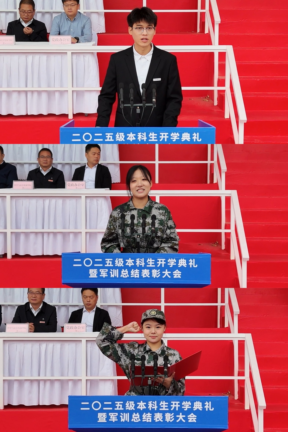亲爱的同学们,当你们踏入这座始于抗日烽火、延绵于改革开放、奋进在中国式现代化征程中的学府时,不仅开启了个人求知的崭新篇章,也肩负起了时代与国家的深切期望。希望你们在这里坚定理想、传承精神,德法兼修、知行合一,在全面建设社会主义现代化国家的火热实践中,绽放绚丽的青春之花!