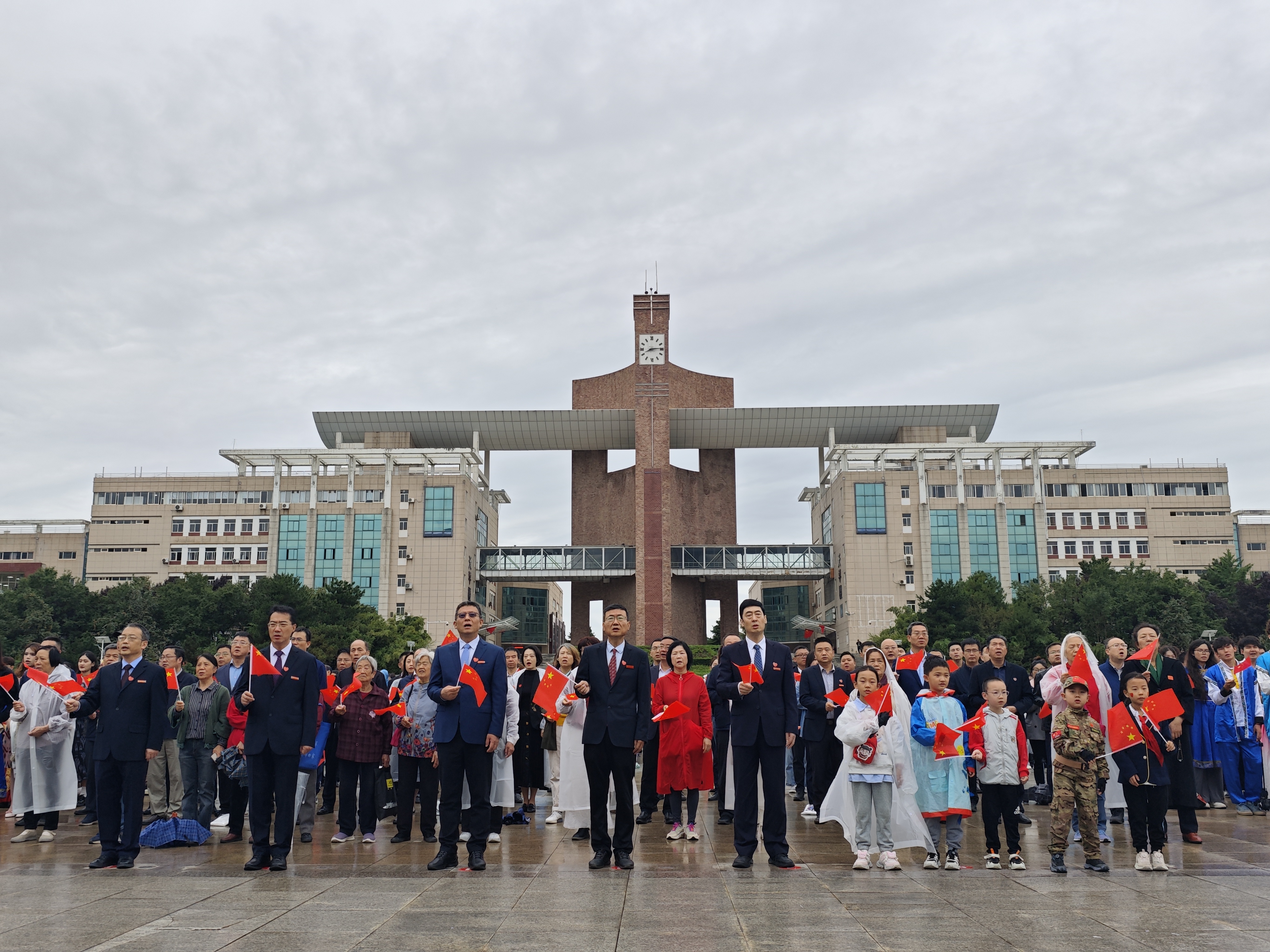 “五星红旗迎风飘扬,胜利歌声多么响亮,歌唱我们亲爱的祖国,从今走向繁荣富强……”升旗仪式尾声,全体师生挥舞着手中的五星红旗,齐声高唱《歌唱祖国》,用真挚的歌声传递对祖国的祝福。这一刻,歌声与心声相融,成为西法大人献给祖国华诞最动人的礼赞。