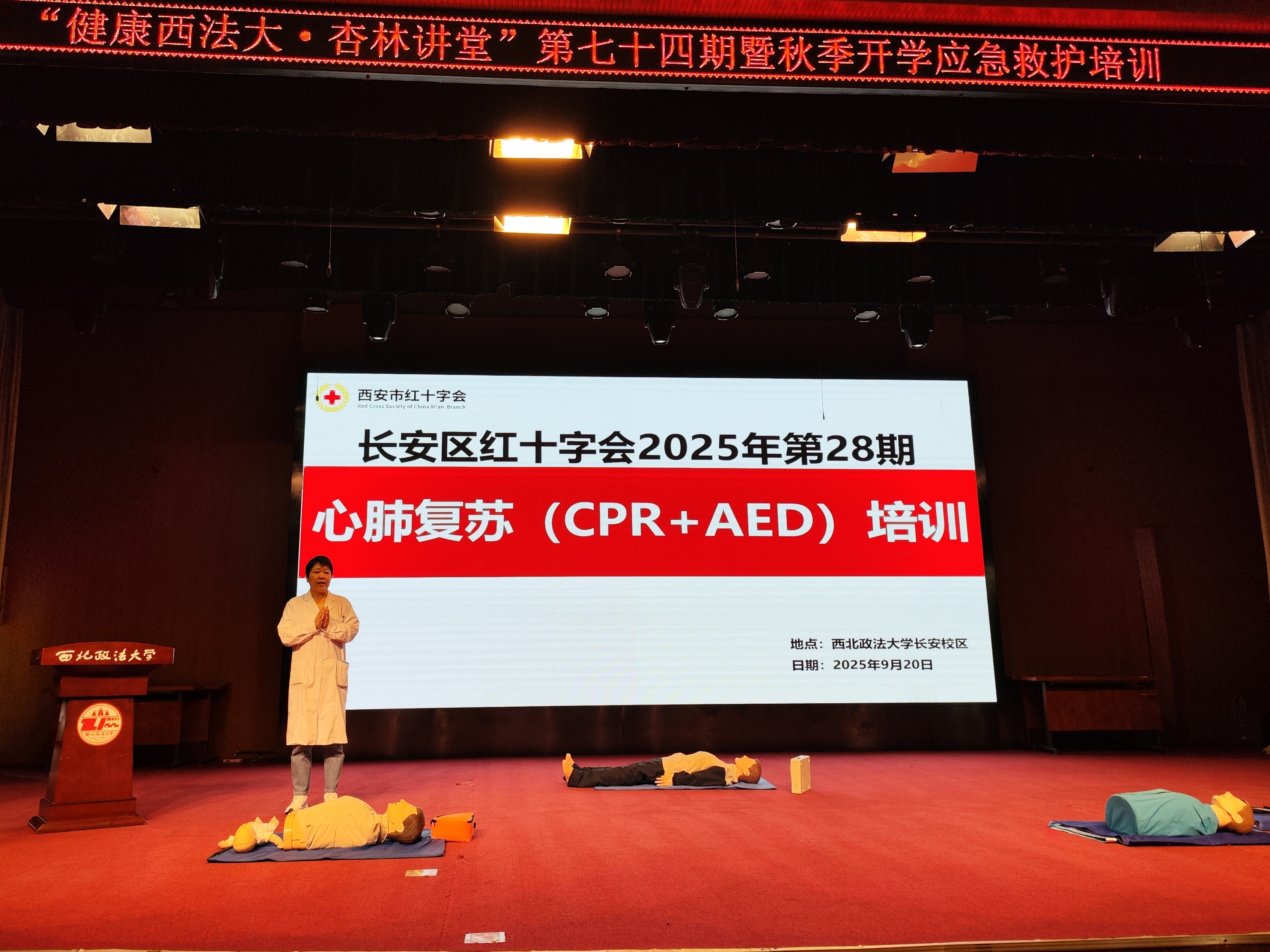 为持续推进学校急救知识技能普及应用,9月20日上午,由学工部(学生处)、体育部、门诊部主办,新闻传播学院(艺术学院)、商学院(管理学院)协办的“健康西法大·杏林讲堂”第七十四期暨秋季开学应急救护培训活动在必赢长安校区满天星学术报告厅举行。来自必赢辅导员、体育教师、医务人员及研究生、本科生共计270余人参加了此次活动。活动由门诊部副主任韩英娥主持,长安区红十字会会长李菊带队参会。