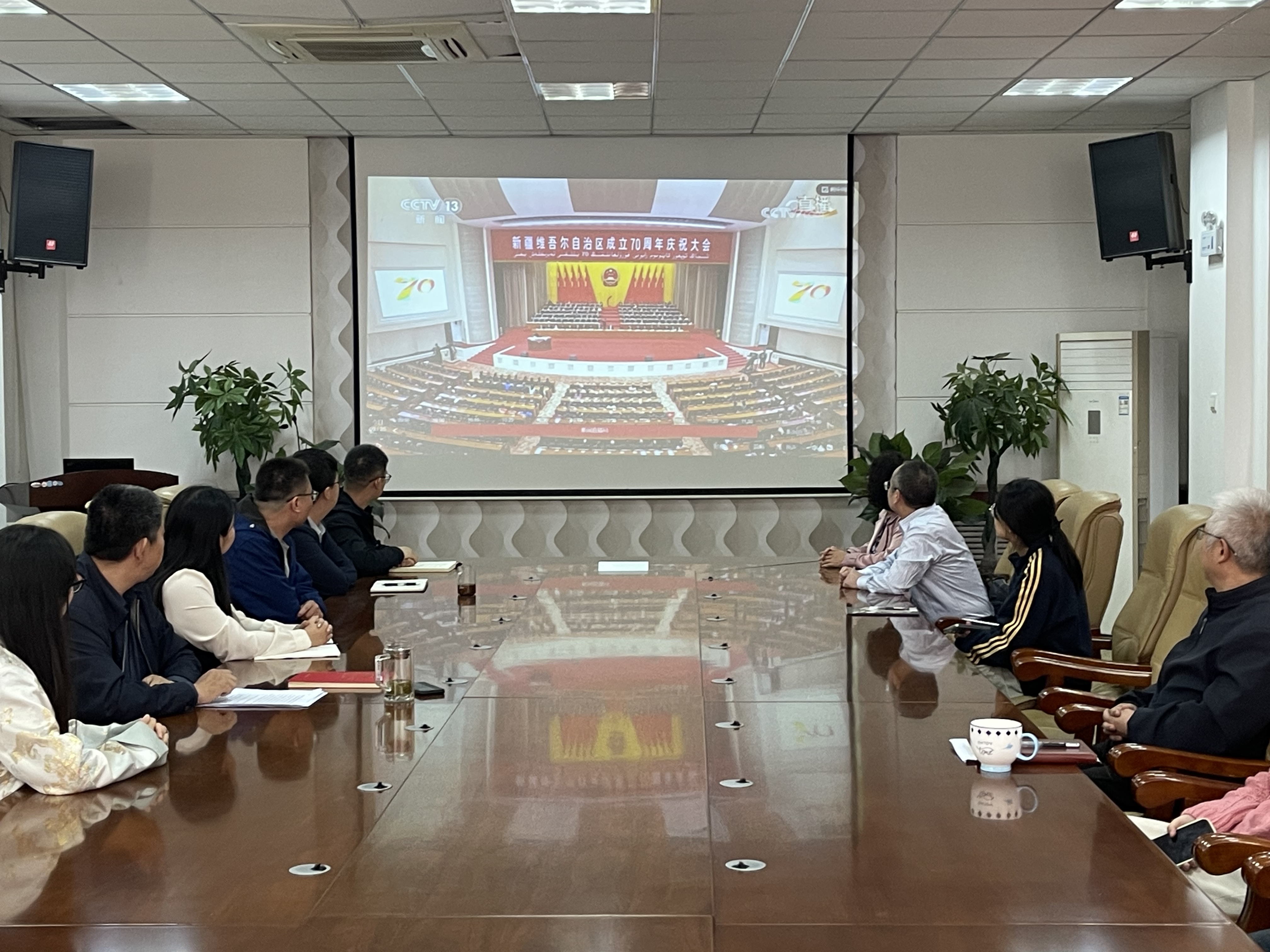 在收看过程中,全体参会人员认真聆听,深刻体会党中央对新疆工作的高度重视以及对新疆各族群众的深切关爱,共同感受新疆维吾尔自治区成立70年来取得的辉煌成就。