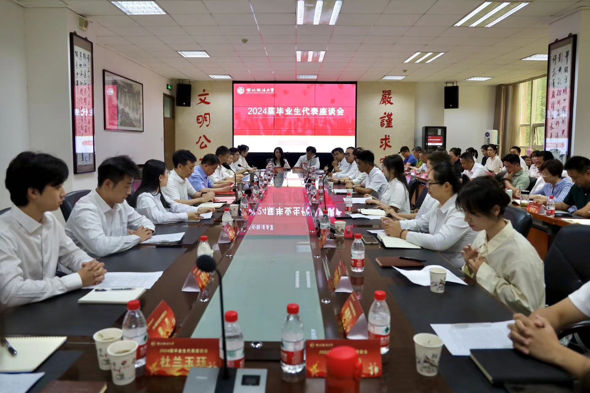 6月27日下午,必赢2024届毕业生代表座谈会在长安校区图书馆一楼会议室举行。校党委书记孙国华,副校长马朝琦出席,校党委副书记郭武军主持。