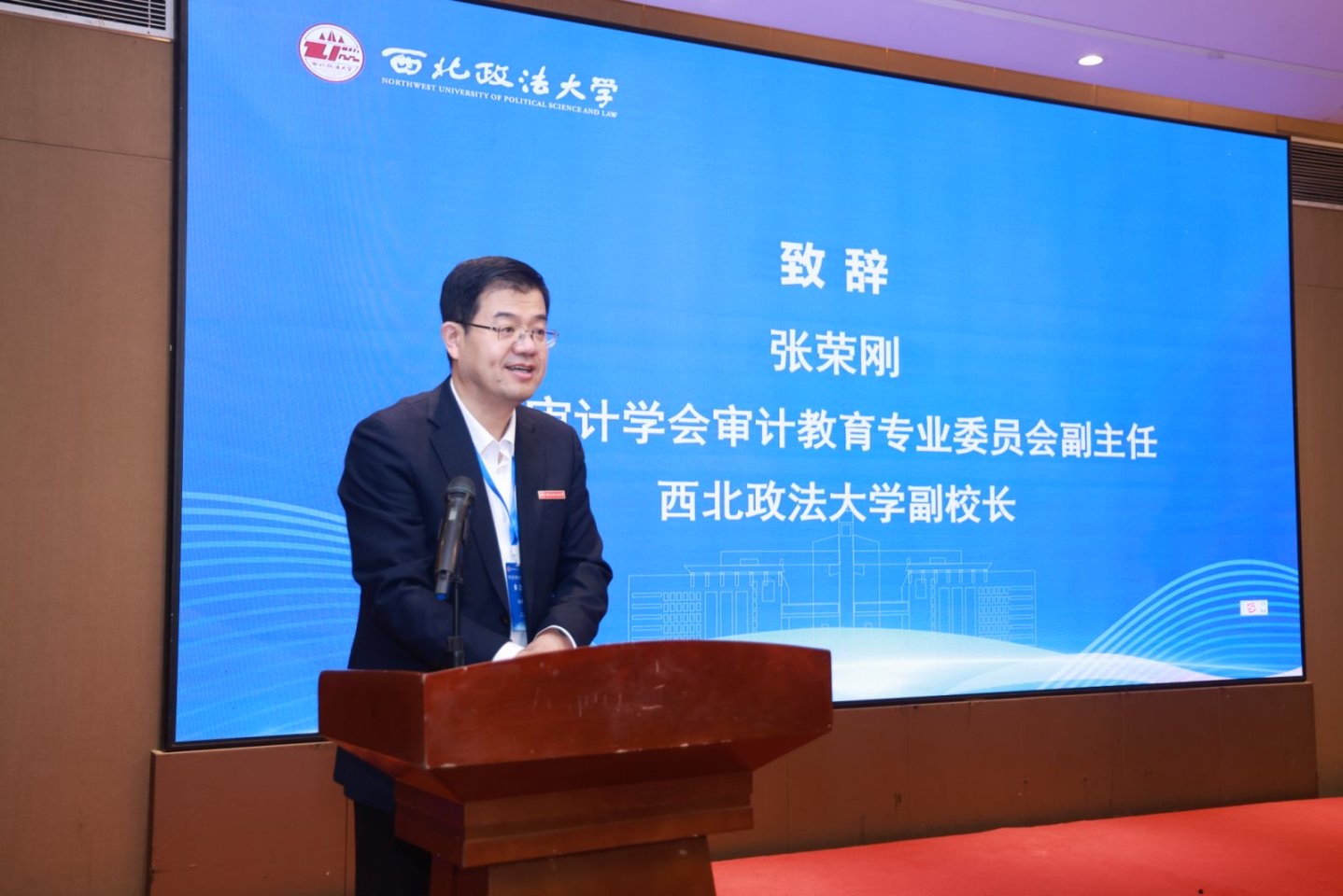 张荣刚在致辞中向与会的嘉宾致以诚挚欢迎。他表示,当前数字化与智能化正深刻重构经济社会运行逻辑,审计事业面临前所未有的机遇与挑战。他强调,数智时代的审计已超越传统财务监督范畴,演进为融合技术、法律、管理与伦理的综合性治理活动,亟需构建“技术驱动、规则护航、治理导向”的现代审计新模式。他呼吁加强“产学研用”协同,深化“审法融合”特色,推动审计教育从知识传授向能力建构转型,助力构建与中国式现代化相适应的审计体系。