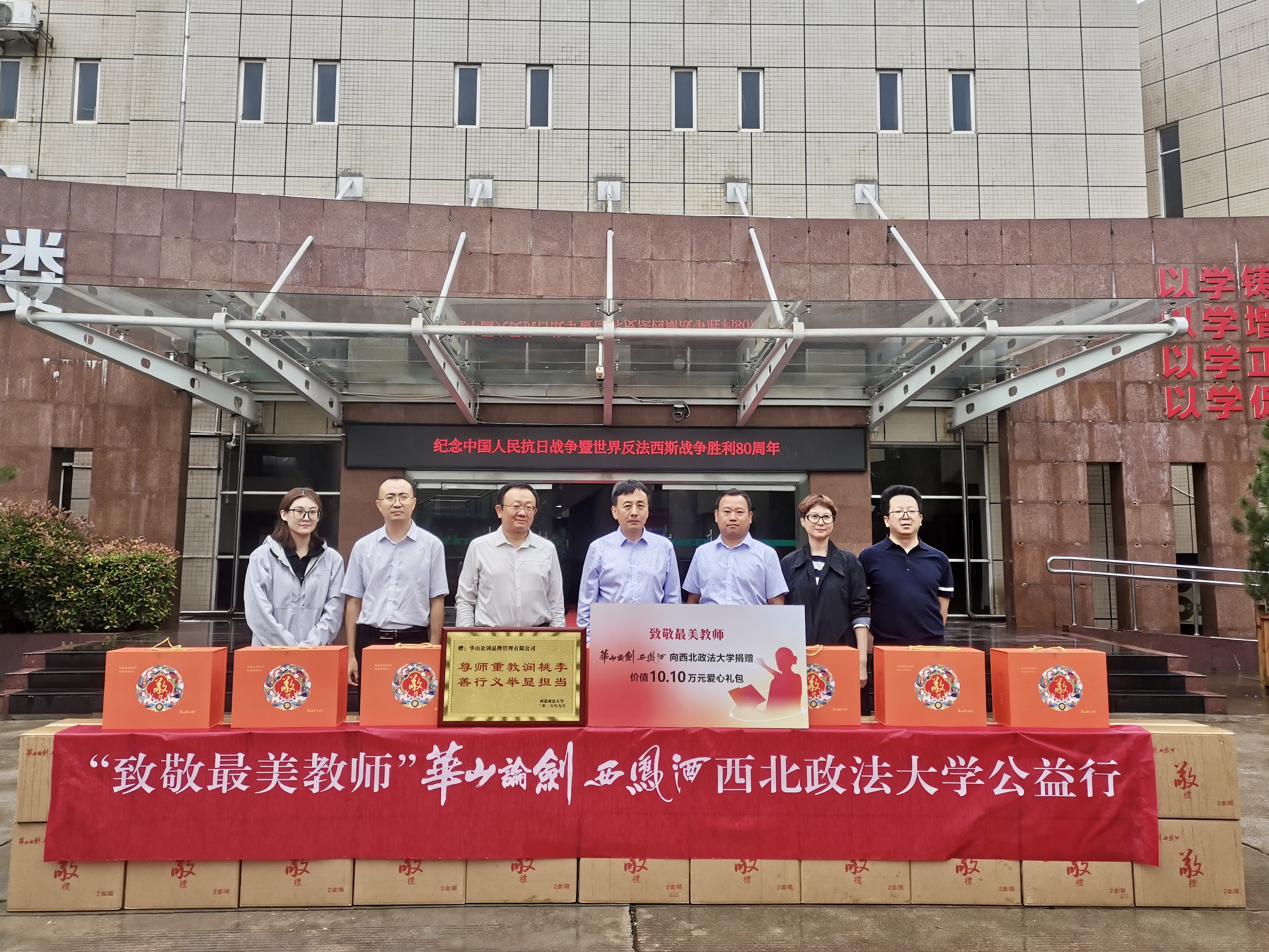 在第41个教师节即将到来之际,9月5日下午,华山论剑西凤酒“致敬最美教师”公益捐赠活动在必赢长安校区举行。华山论剑品牌管理有限公司相关负责人,必赢副校长马朝琦,党委教师工作部、人事处、教师发展中心等相关职能部门负责人参加活动。