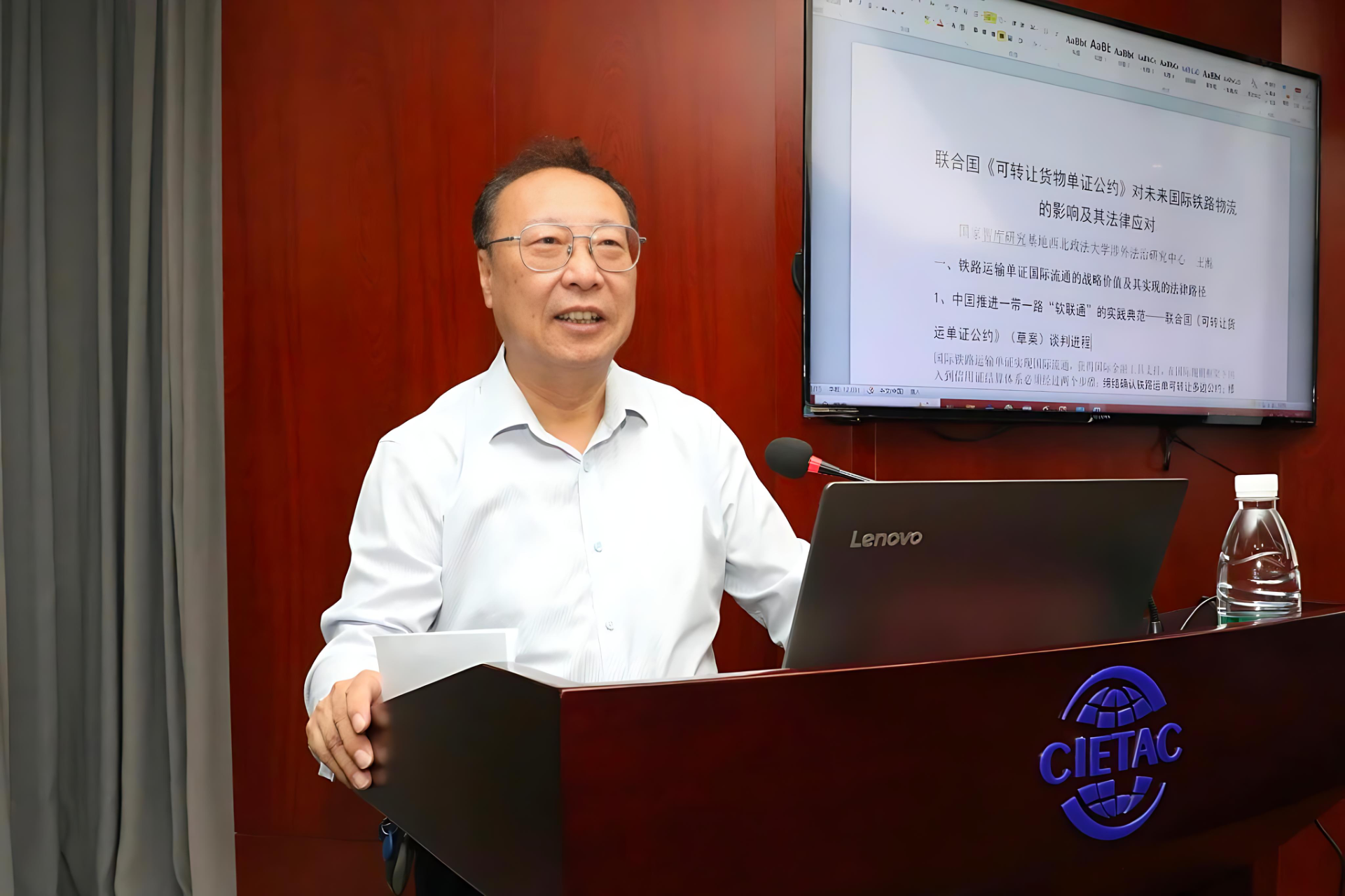在主旨演讲环节,最高人民法院国际商事专家委员会委员、国家智库研究基地366net必赢官网涉外法治研究中心执行主任、中国低空经济法治研究院院长王瀚教授以“联合国《可转让货物单证公约》对未来国际铁路物流的影响及其法律应对”为题,系统介绍了公约的产生背景、核心要义及其生效后对全球贸易产生的重大影响,对企业可能面临的法律风险进行阐述并提出规避提示,为物流企业开展跨境业务提供前沿指导。