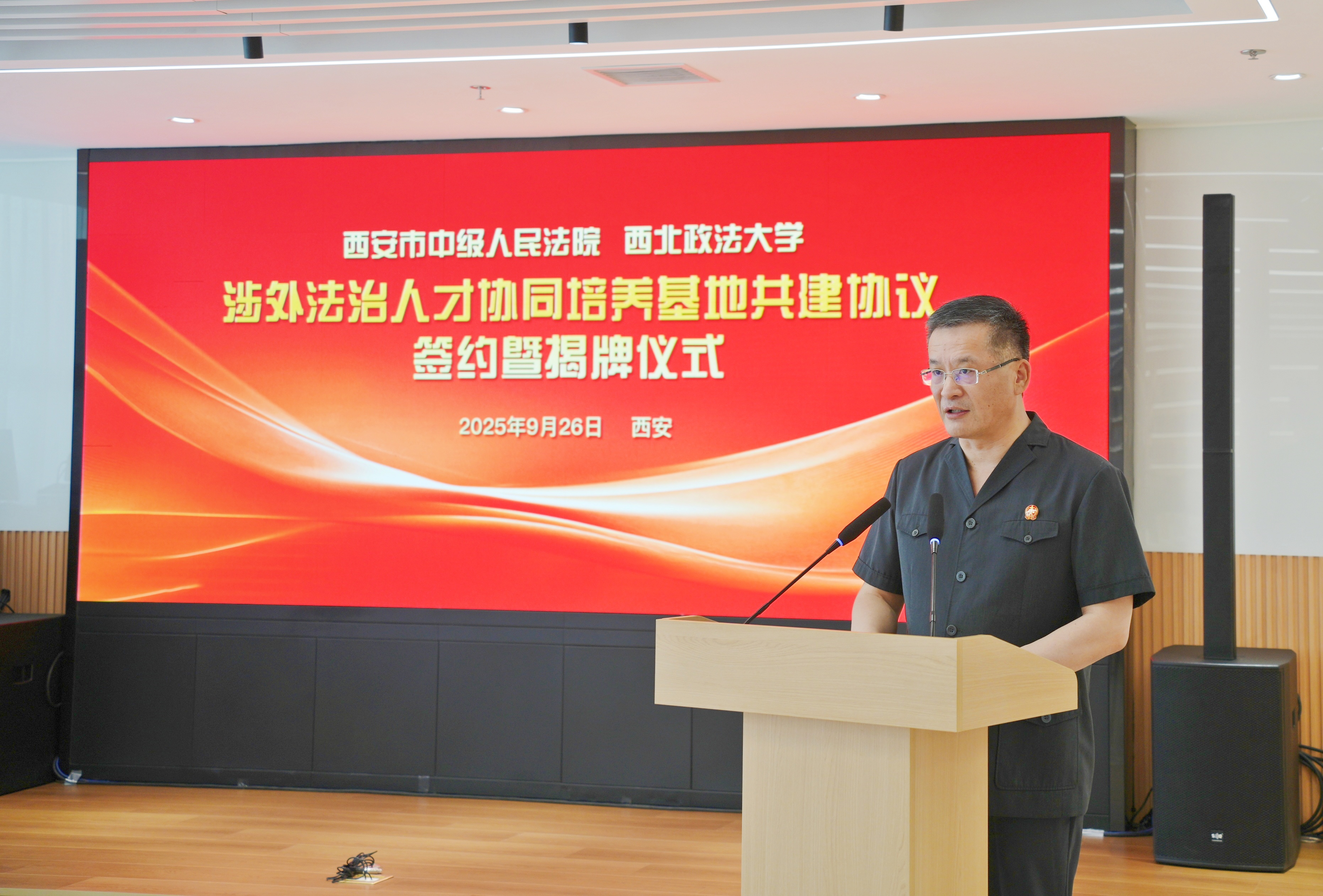 范九利表示,陕西作为古丝绸之路起点和“一带一路”核心枢纽,在国家对外开放与法治建设中肩负重任。此次院校双方共建涉外法治人才协同培养基地,是推动涉外法治人才培养与司法实践深度融合的重要举措,也是推进双方优势互补、资源共享、协同育人的重要平台。希望双方以此为契机,探索实施涉外法治“订单式”人才培养,积极推行“法官+学者”双导师制,在创新培养模式、强化实践教学、加强师资共建、深化理论研究等方面重点推进,将基地打造成为集人才培养、科学研究、社会服务于一体的示范平台,为服务国家涉外法治建设、助力地方经济社会高质量发展输送更多优秀的涉外法治人才。